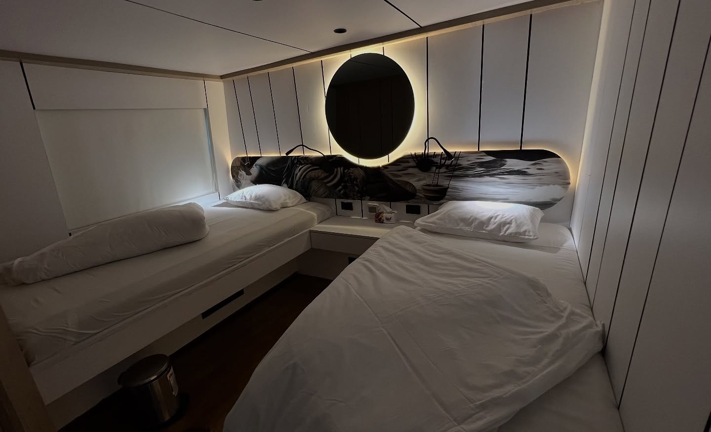Miejsce w 2-osobowej kabinie basic, poniżej pokładu - 1400 € na osobę.
